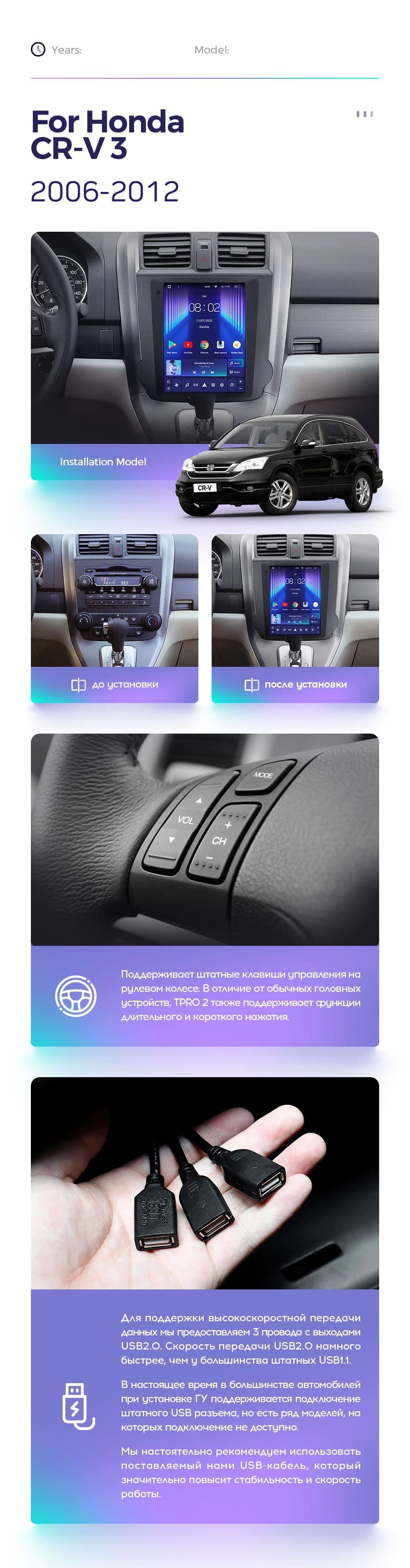 Штатная магнитола Tesla style Teyes TPRO 2 4/64 Honda CR-V 3 RE (2006-2012) Тип-B - купить всего за 40 700 руб. в интернет-магазине в Омске Teyes.com.ru. ✓ Самый лучший выбор мультимедиа ✓ Лучшая замена штатному ГУ ✓ Тел. +7 (800) 775-31-74