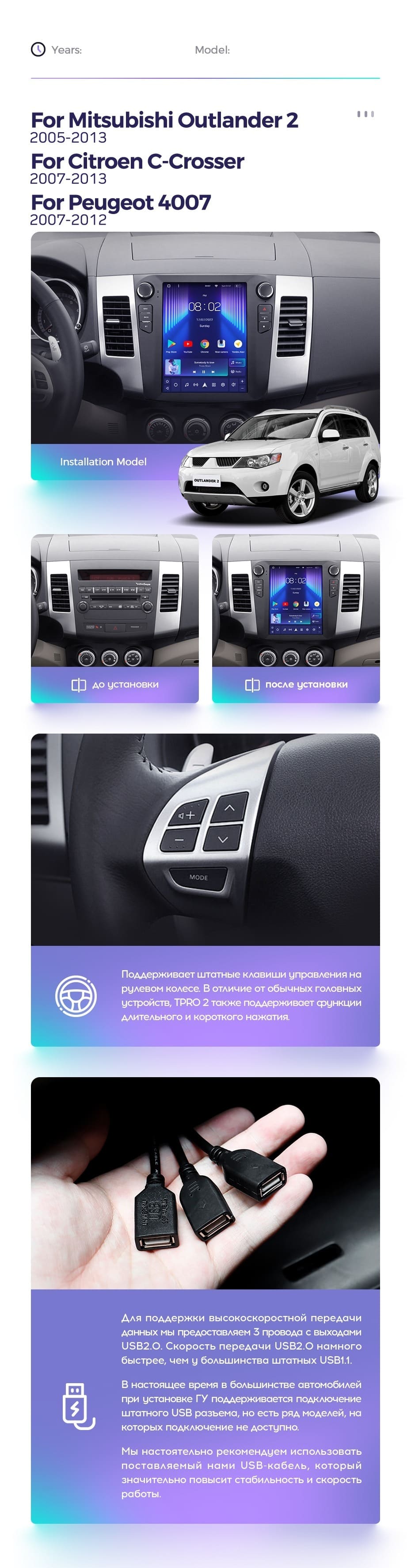 Штатная магнитола Tesla style Teyes TPRO 2 4/64 Mitsubishi Outlander 2 CW0W (2005-2013) Тип-B - купить всего за 39 900 руб. в интернет-магазине в Омске Teyes.com.ru. ✓ Самый лучший выбор мультимедиа ✓ Лучшая замена штатному ГУ ✓ Тел. +7 (800) 775-31-74
