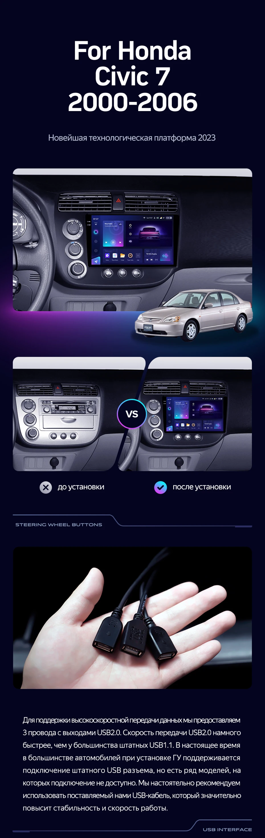 Штатная магнитола Teyes CC3 2K 360 6/128 Honda Civic 7 (2000-2006) F3 Правый руль - купить всего за 59 310 руб. в интернет-магазине в Омске Teyes.com.ru. ✓ Самый лучший выбор мультимедиа ✓ Лучшая замена штатному ГУ ✓ Тел. +7 (800) 775-31-74