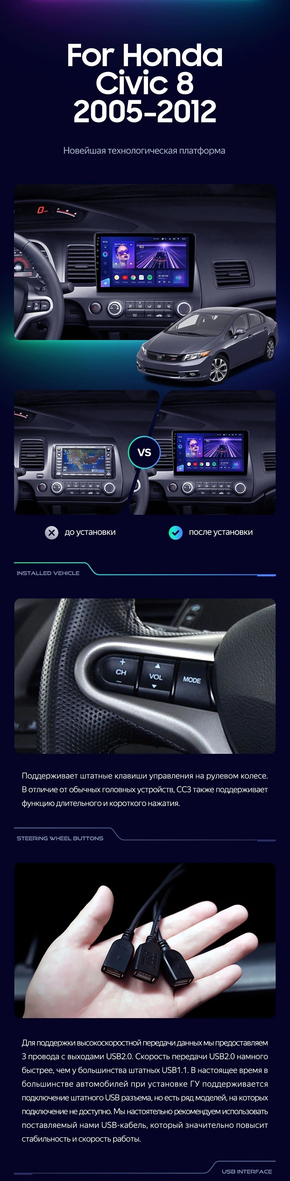 Штатная магнитола Teyes CC3 2K 360 6/128 Honda Civic 8 FK FN FD (2005-2012) - купить всего за 60 700 руб. в интернет-магазине в Омске Teyes.com.ru. ✓ Самый лучший выбор мультимедиа ✓ Лучшая замена штатному ГУ ✓ Тел. +7 (800) 775-31-74