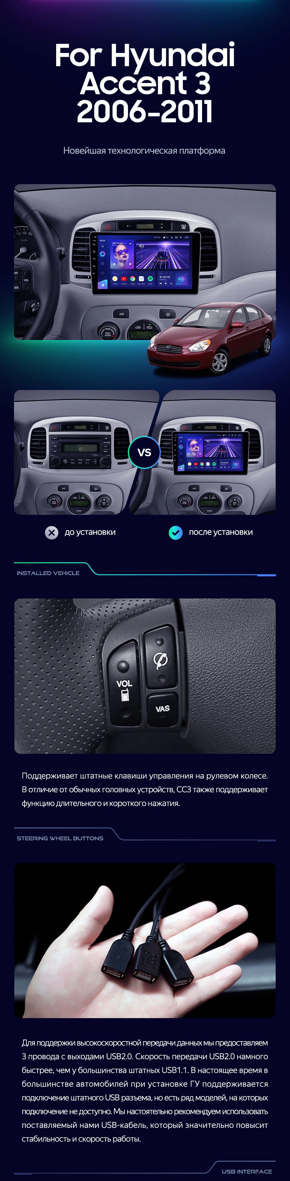 Штатная магнитола Teyes CC3 2K 360 6/128 Hyundai Accent 3 (2006-2011) - купить всего за 59 610 руб. в интернет-магазине в Омске Teyes.com.ru. ✓ Самый лучший выбор мультимедиа ✓ Лучшая замена штатному ГУ ✓ Тел. +7 (800) 775-31-74