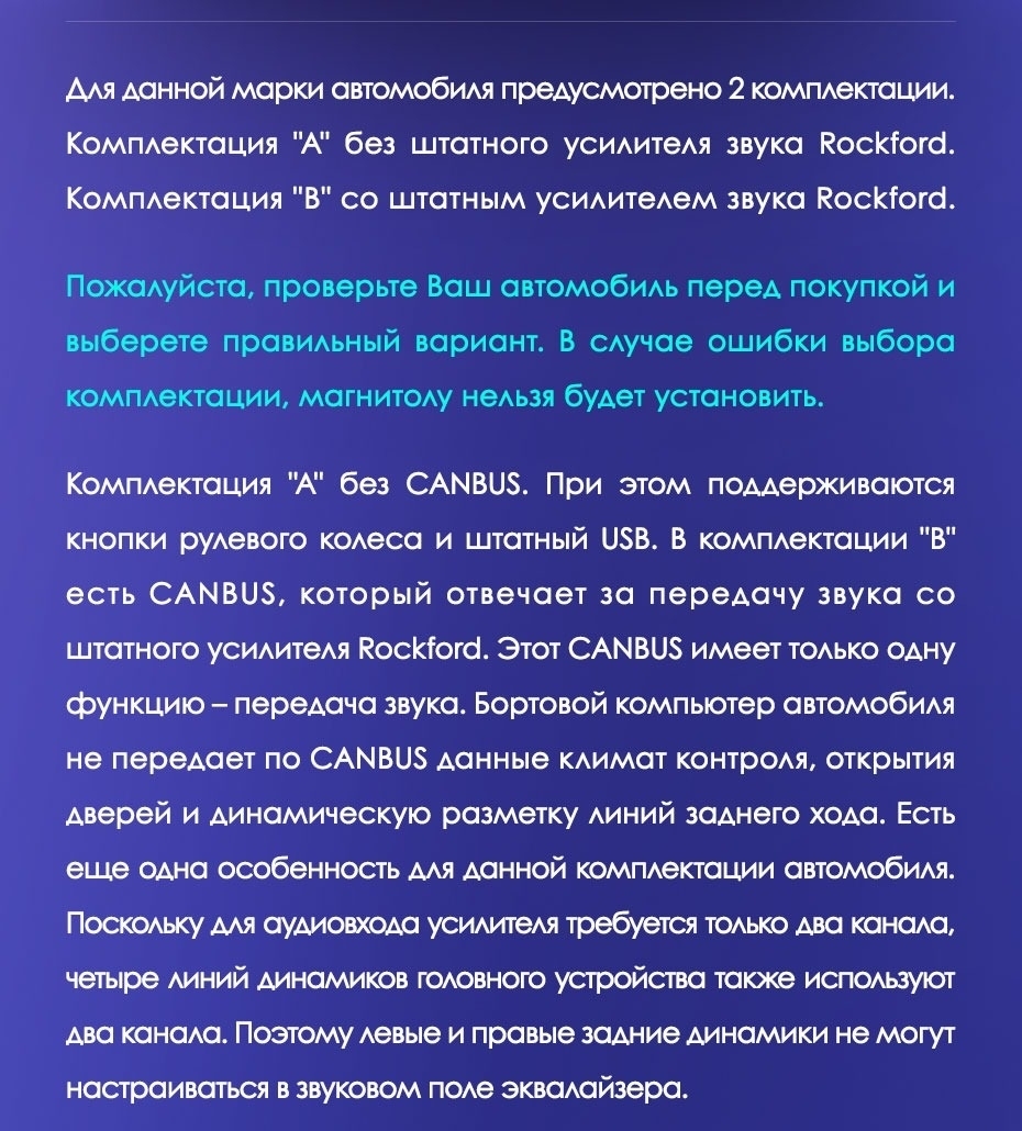 | Радио чип | TDA7708 (c RDS) | TDA7708 (c RDS) | SI_4755 |