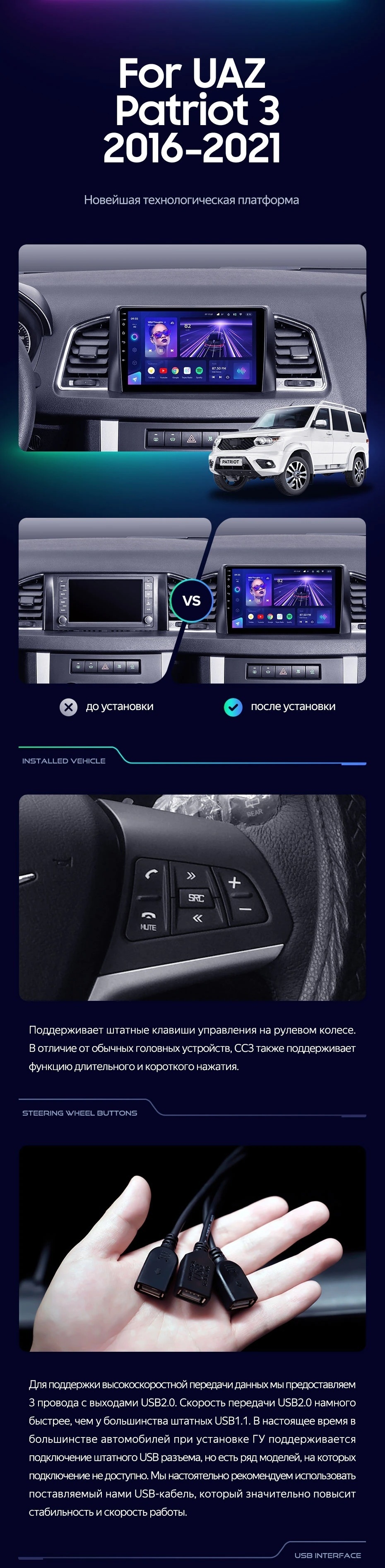 Штатная магнитола Teyes CC3 2K 6/128 UAZ Patriot 3 (2016-2021) F2 - купить всего за 52 750 руб. в интернет-магазине в Омске Teyes.com.ru. ✓ Самый лучший выбор мультимедиа ✓ Лучшая замена штатному ГУ ✓ Тел. +7 (800) 775-31-74