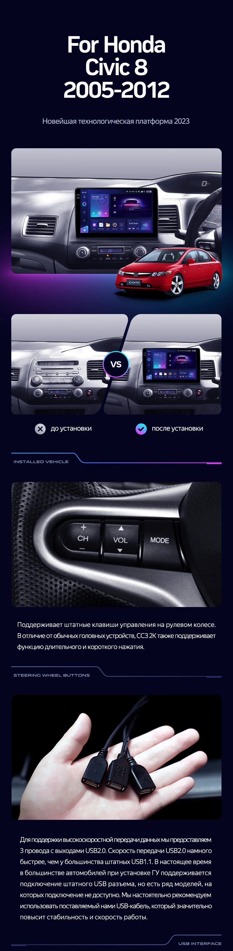 Штатная магнитола Teyes CC3 4/32 Honda Civic 8 FK FN FD (2005-2012) Правый руль - купить всего за 40 050 руб. в интернет-магазине в Омске Teyes.com.ru. ✓ Самый лучший выбор мультимедиа ✓ Лучшая замена штатному ГУ ✓ Тел. +7 (800) 775-31-74
