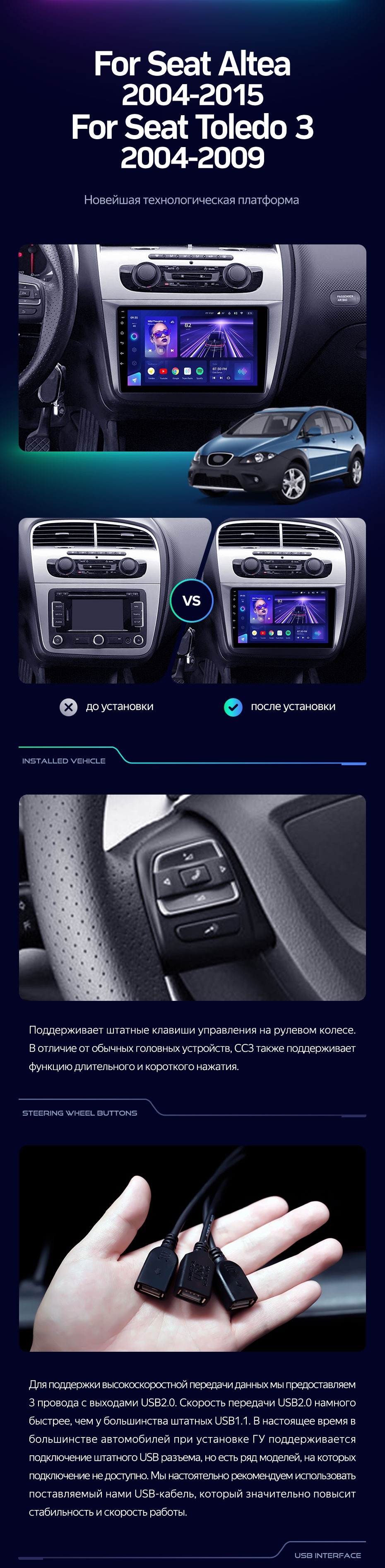 Штатная магнитола Teyes CC3 4/32 Seat Altea 5P (2004-2015) - купить всего за 38 500 руб. в интернет-магазине в Омске Teyes.com.ru. ✓ Самый лучший выбор мультимедиа ✓ Лучшая замена штатному ГУ ✓ Тел. +7 (800) 775-31-74