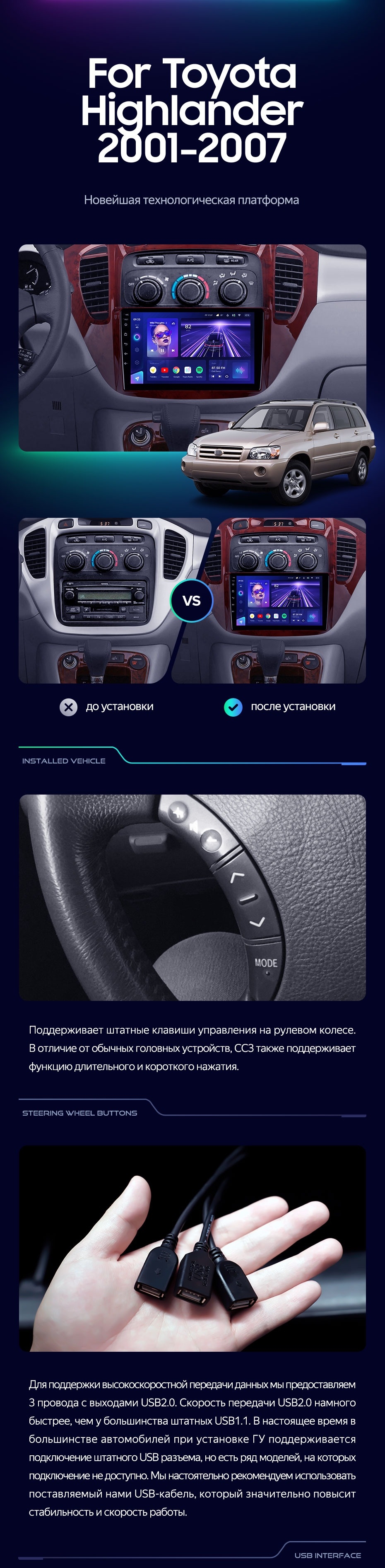 Штатная магнитола Teyes CC3 4/32 Toyota Highlander 1 XU20 (2001-2007) - купить всего за 41 400 руб. в интернет-магазине в Омске Teyes.com.ru. ✓ Самый лучший выбор мультимедиа ✓ Лучшая замена штатному ГУ ✓ Тел. +7 (800) 775-31-74