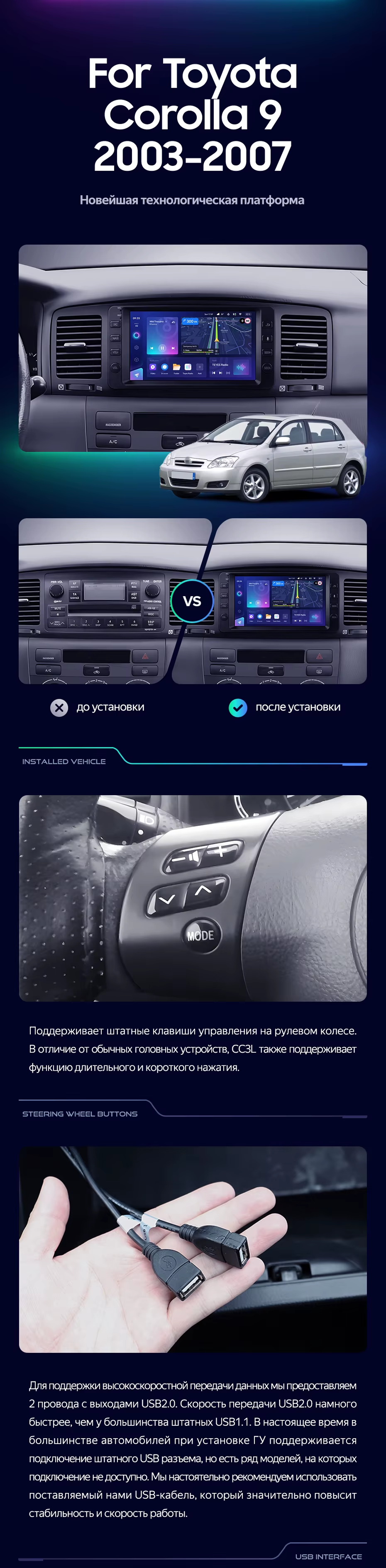 Штатная магнитола Teyes CC3 4/32 Toyota Corolla 9 E120 E130 (2003-2007) 7" - купить всего за 36 700 руб. в интернет-магазине в Омске Teyes.com.ru. ✓ Самый лучший выбор мультимедиа ✓ Лучшая замена штатному ГУ ✓ Тел. +7 (800) 775-31-74
