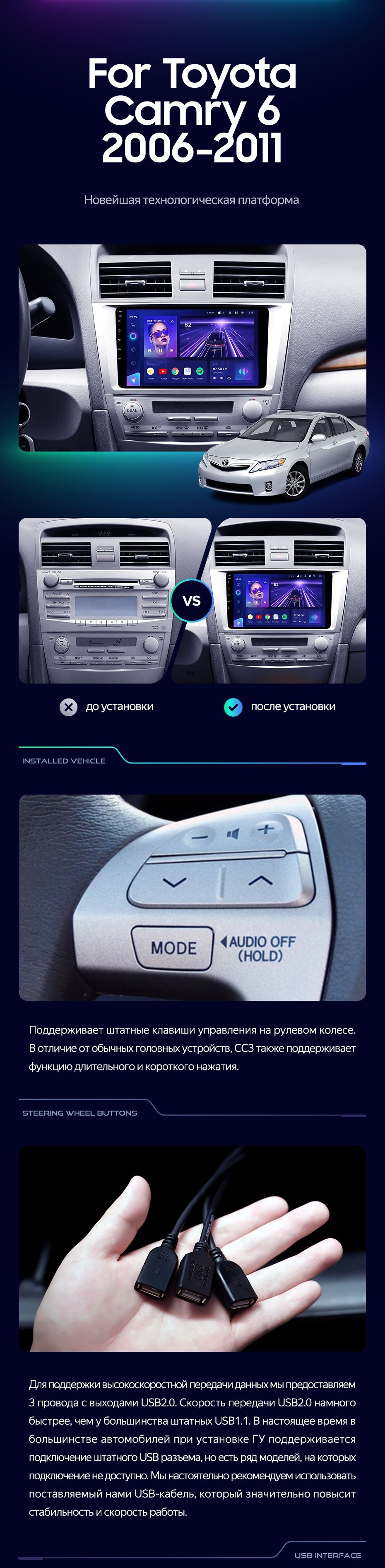 Штатная магнитола Teyes CC3 4/64 Toyota Camry 6 XV 40 (2006-2011) F1 - купить всего за 40 700 руб. в интернет-магазине в Омске Teyes.com.ru. ✓ Самый лучший выбор мультимедиа ✓ Лучшая замена штатному ГУ ✓ Тел. +7 (800) 775-31-74