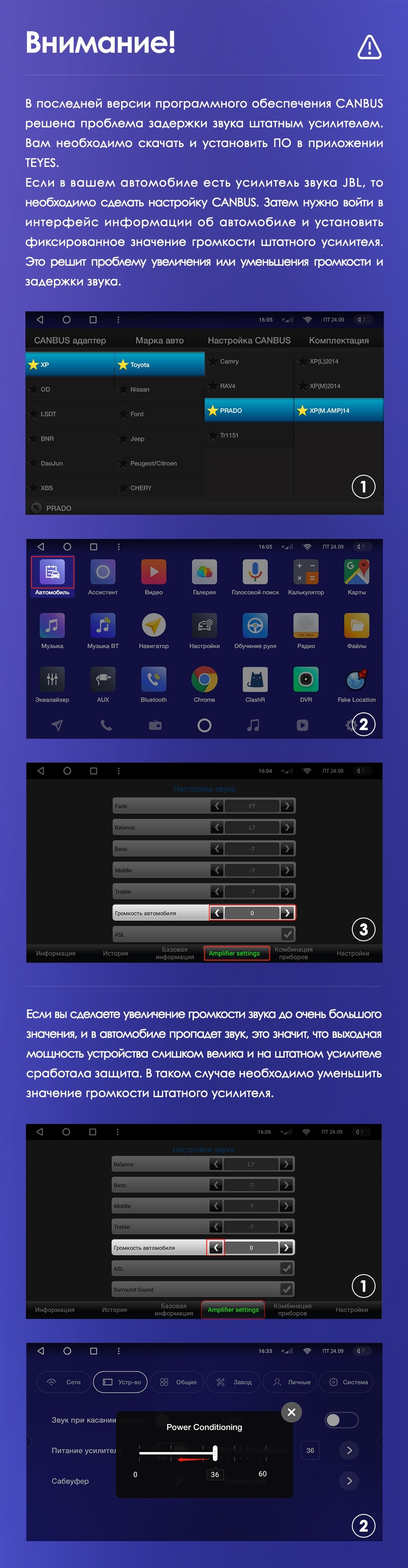 Главным достоянием Teyes CC3 является объёмный звук. Вы можете создать такую акустическую среду в салоне автомобиля, которую пожелаете - без задержек и помех. Это возможно благодаря двойному звуковому чипу DPS Adau1701 + Rohm32107 и коаксиальному (оптоволоконным) кабелю цифрового аудиовыхода, который снижает уровень фоновых шумов.