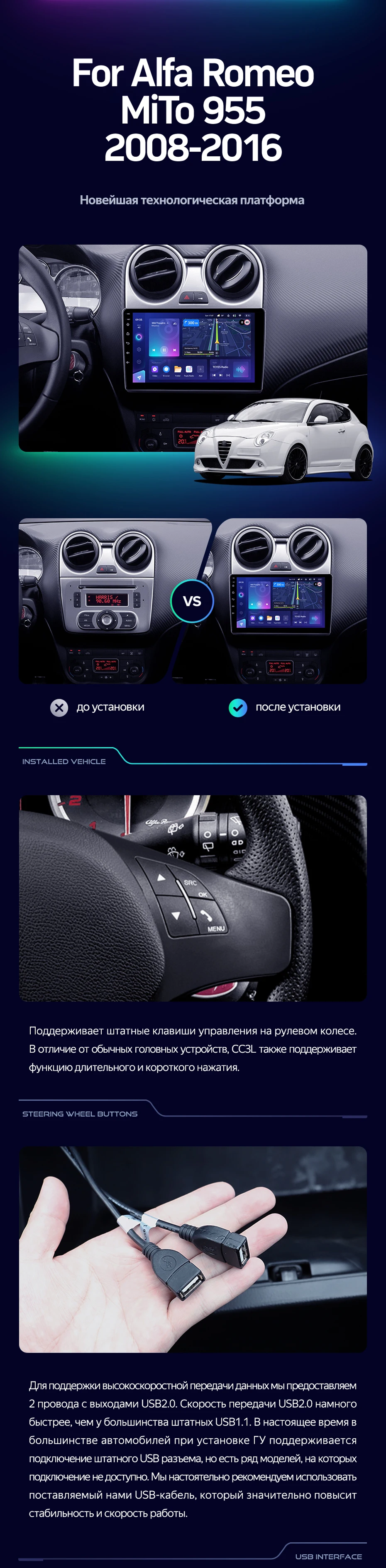 Штатная магнитола Teyes CC3L 4/32 Alfa Romeo MiTo 955 (2008-2016) - купить всего за 28 300 руб. в интернет-магазине в Омске Teyes.com.ru. ✓ Самый лучший выбор мультимедиа ✓ Лучшая замена штатному ГУ ✓ Тел. +7 (800) 775-31-74