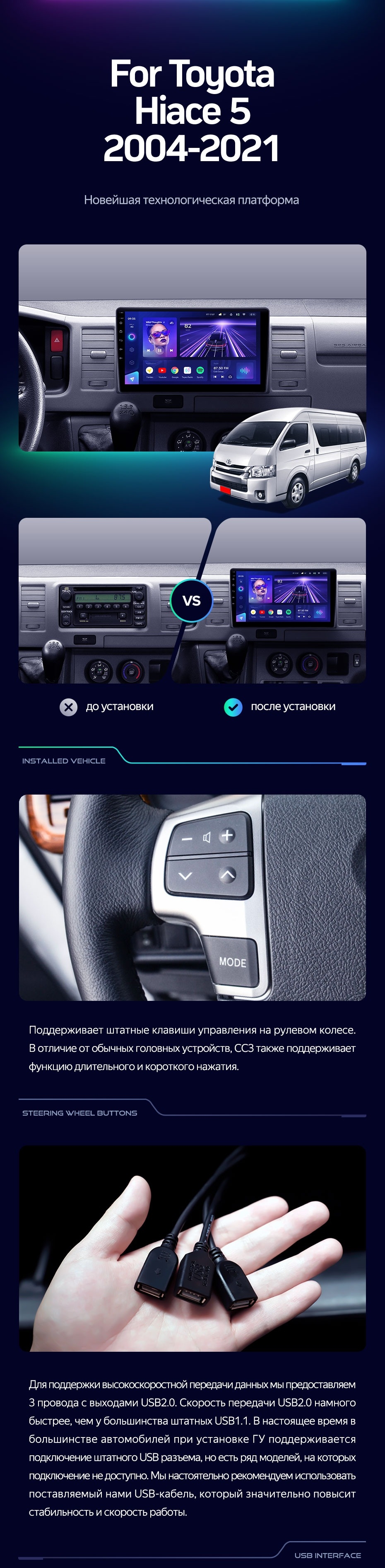 Штатная магнитола Teyes CC3L 4/32 Toyota Hiace XH10 H200 (2004-2021) - купить всего за 26 630 руб. в интернет-магазине в Омске Teyes.com.ru. ✓ Самый лучший выбор мультимедиа ✓ Лучшая замена штатному ГУ ✓ Тел. +7 (800) 775-31-74