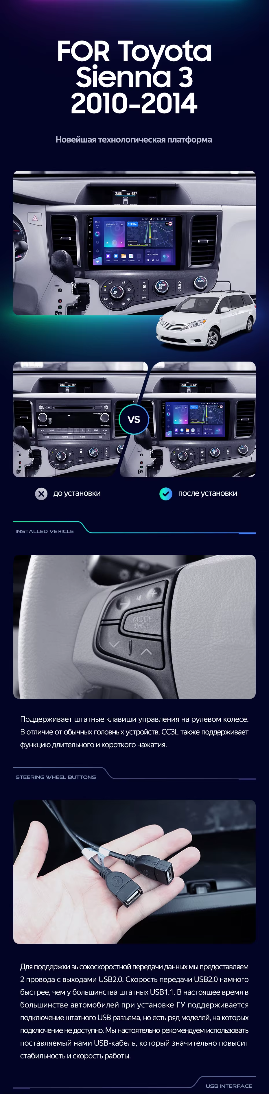 Штатная магнитола Teyes CC3L 4/64 Toyota Sienna 3 XL30 (2010-2014) - купить всего за 31 400 руб. в интернет-магазине в Омске Teyes.com.ru. ✓ Самый лучший выбор мультимедиа ✓ Лучшая замена штатному ГУ ✓ Тел. +7 (800) 775-31-74