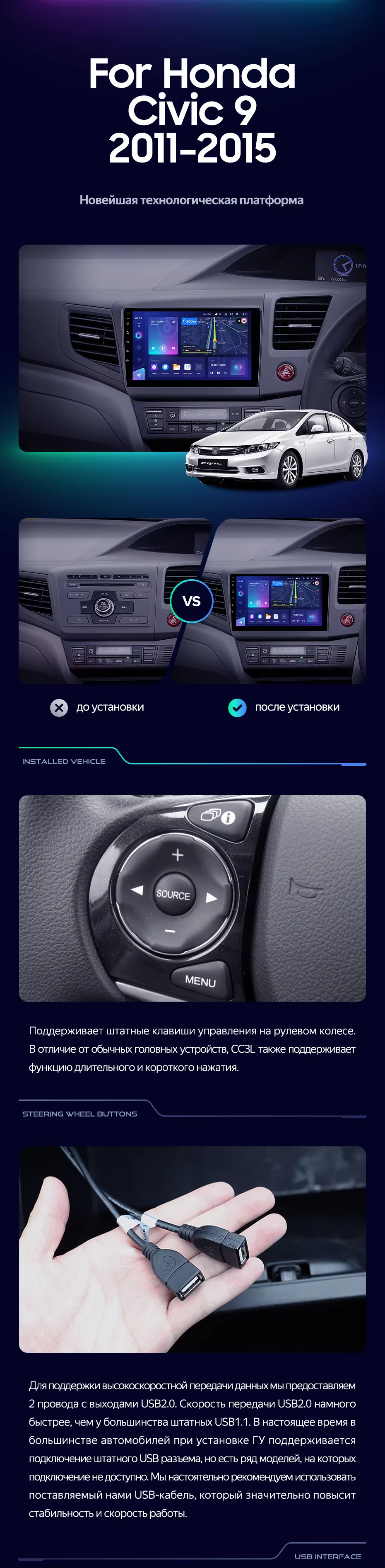 Штатная магнитола Teyes CC3L WiFi 2/32 Honda Civic 9 FB FK FD (2011-2015) Правый руль - купить всего за 17 800 руб. в интернет-магазине в Омске Teyes.com.ru. ✓ Самый лучший выбор мультимедиа ✓ Лучшая замена штатному ГУ ✓ Тел. +7 (800) 775-31-74