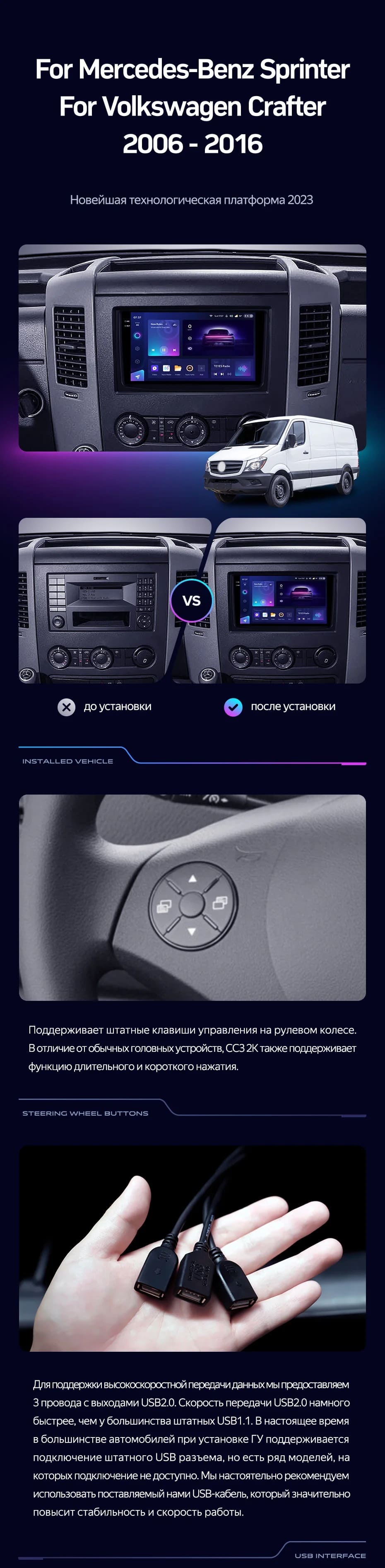 Штатная магнитола Teyes CC3L WiFi 2/32 Mercedes-Benz Sprinter (2006-2016) F2 - купить всего за 23 100 руб. в интернет-магазине в Омске Teyes.com.ru. ✓ Самый лучший выбор мультимедиа ✓ Лучшая замена штатному ГУ ✓ Тел. +7 (800) 775-31-74