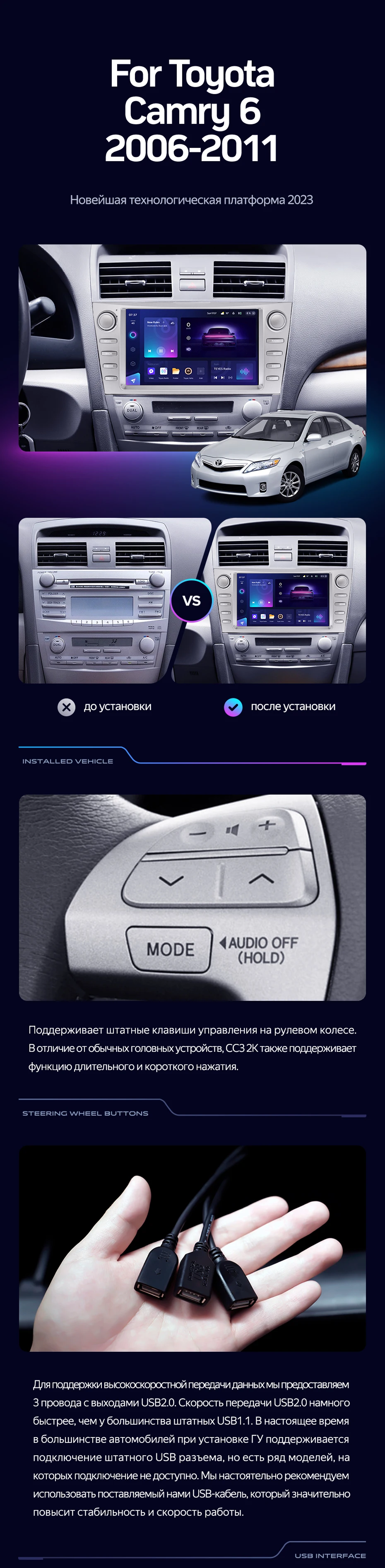 Штатная магнитола Teyes CC3L WiFi 2/32 Toyota Camry 6 XV 40 (2006-2011) F4 с кнопками - купить всего за 23 000 руб. в интернет-магазине в Омске Teyes.com.ru. ✓ Самый лучший выбор мультимедиа ✓ Лучшая замена штатному ГУ ✓ Тел. +7 (800) 775-31-74