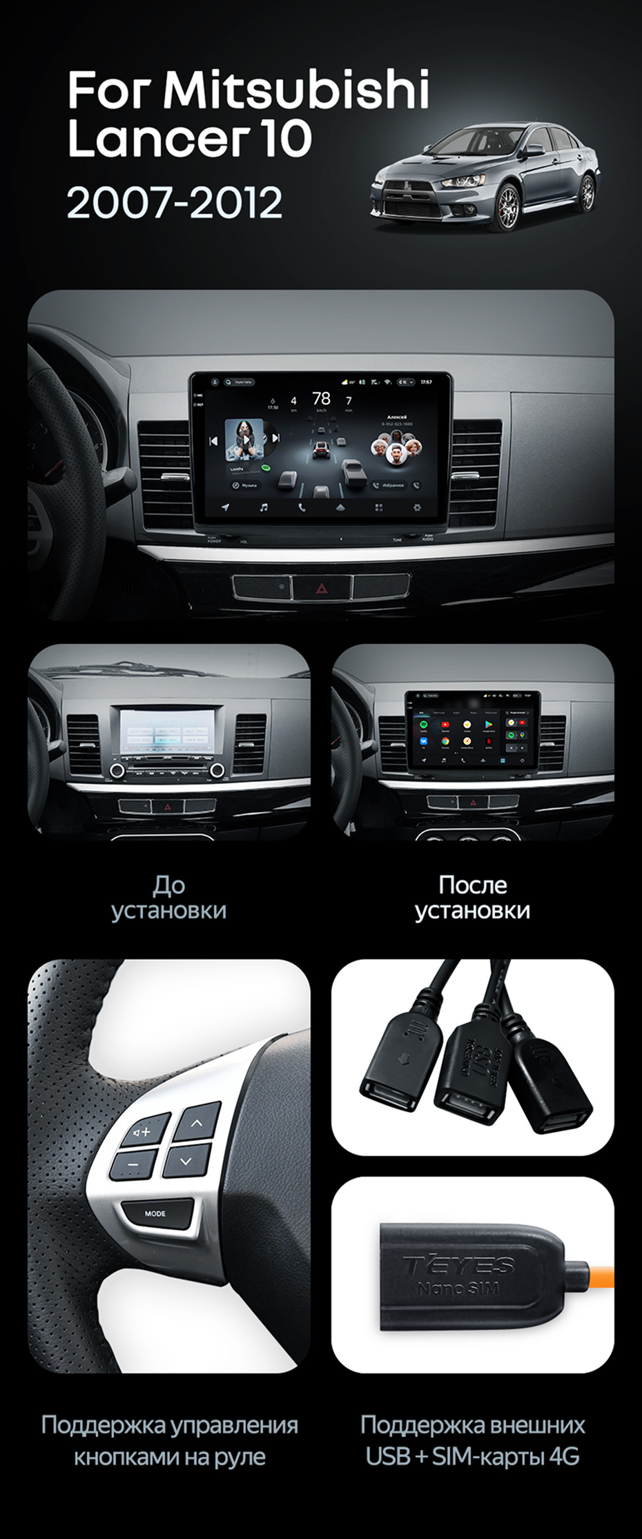 Штатная магнитола Teyes CC4 Pro 12/256 Mitsubishi Lancer 10 CY (2007-2012) Тип-A - купить всего за 72 860 руб. в интернет-магазине в Омске Teyes.com.ru. ✓ Самый лучший выбор мультимедиа ✓ Лучшая замена штатному ГУ ✓ Тел. +7 (800) 775-31-74