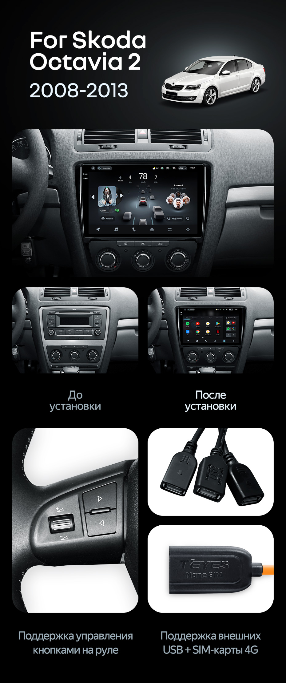 Штатная магнитола Teyes CC4 Pro 12/256 Skoda Octavia 2 A5 (2008-2013) - купить всего за 73 900 руб. в интернет-магазине в Омске Teyes.com.ru. ✓ Самый лучший выбор мультимедиа ✓ Лучшая замена штатному ГУ ✓ Тел. +7 (800) 775-31-74