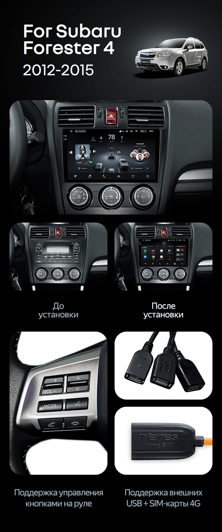 Штатная магнитола Teyes CC4 Pro 12/256 Subaru Forester 4 SJ (2012-2015) Тип-B - купить всего за 75 290 руб. в интернет-магазине в Омске Teyes.com.ru. ✓ Самый лучший выбор мультимедиа ✓ Лучшая замена штатному ГУ ✓ Тел. +7 (800) 775-31-74