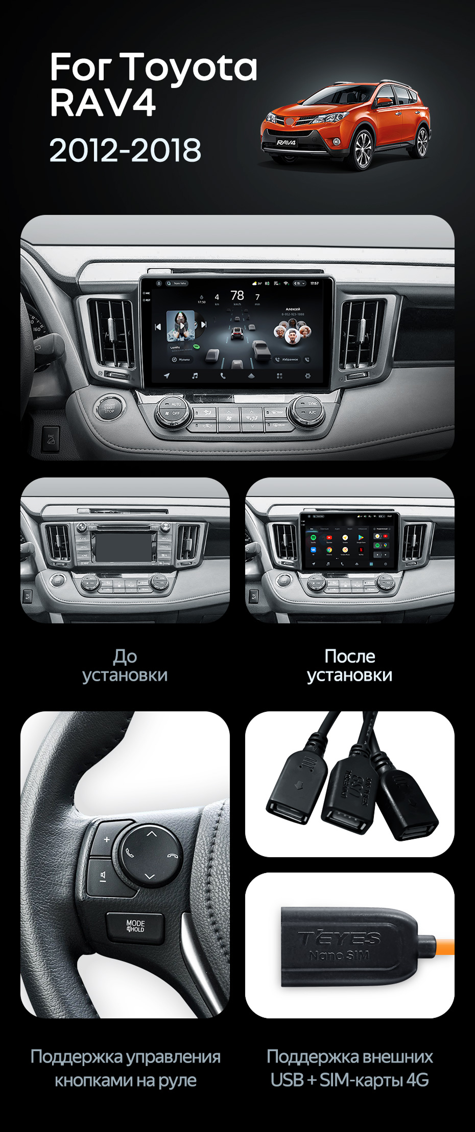 Штатная магнитола Teyes CC4 Pro 12/256 Toyota RAV4 (2012-2018) - купить всего за 73 440 руб. в интернет-магазине в Омске Teyes.com.ru. ✓ Самый лучший выбор мультимедиа ✓ Лучшая замена штатному ГУ ✓ Тел. +7 (800) 775-31-74