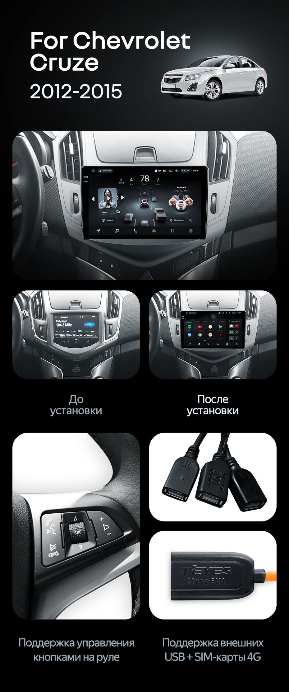 Штатная магнитола Teyes CC4 Pro 8/128 Chevrolet Cruze J300 J308 (2012-2015) (13") - купить всего за 71 900 руб. в интернет-магазине в Омске Teyes.com.ru. ✓ Самый лучший выбор мультимедиа ✓ Лучшая замена штатному ГУ ✓ Тел. +7 (800) 775-31-74