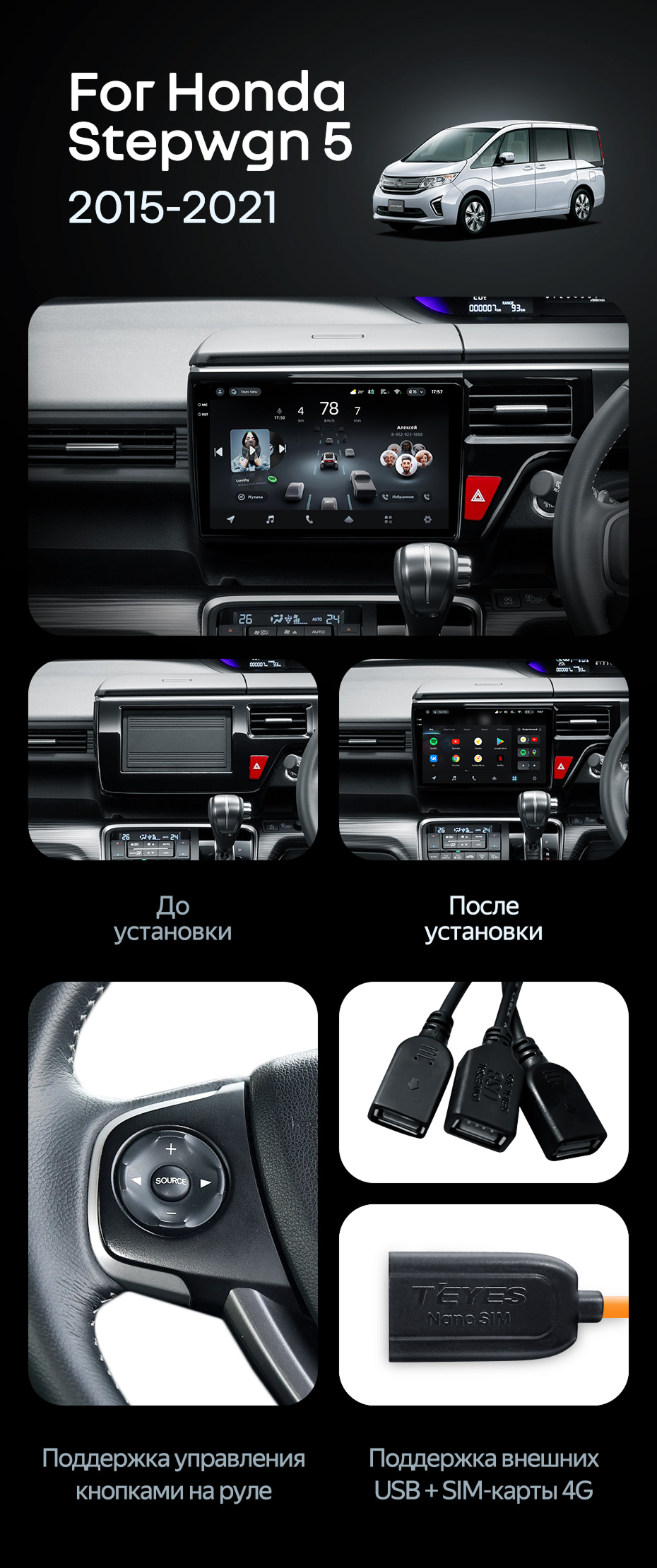 Штатная магнитола Teyes CC4 Pro 8/128 Honda Stepwgn 5 (2015-2021) Правый руль (13") - купить всего за 72 100 руб. в интернет-магазине в Омске Teyes.com.ru. ✓ Самый лучший выбор мультимедиа ✓ Лучшая замена штатному ГУ ✓ Тел. +7 (800) 775-31-74