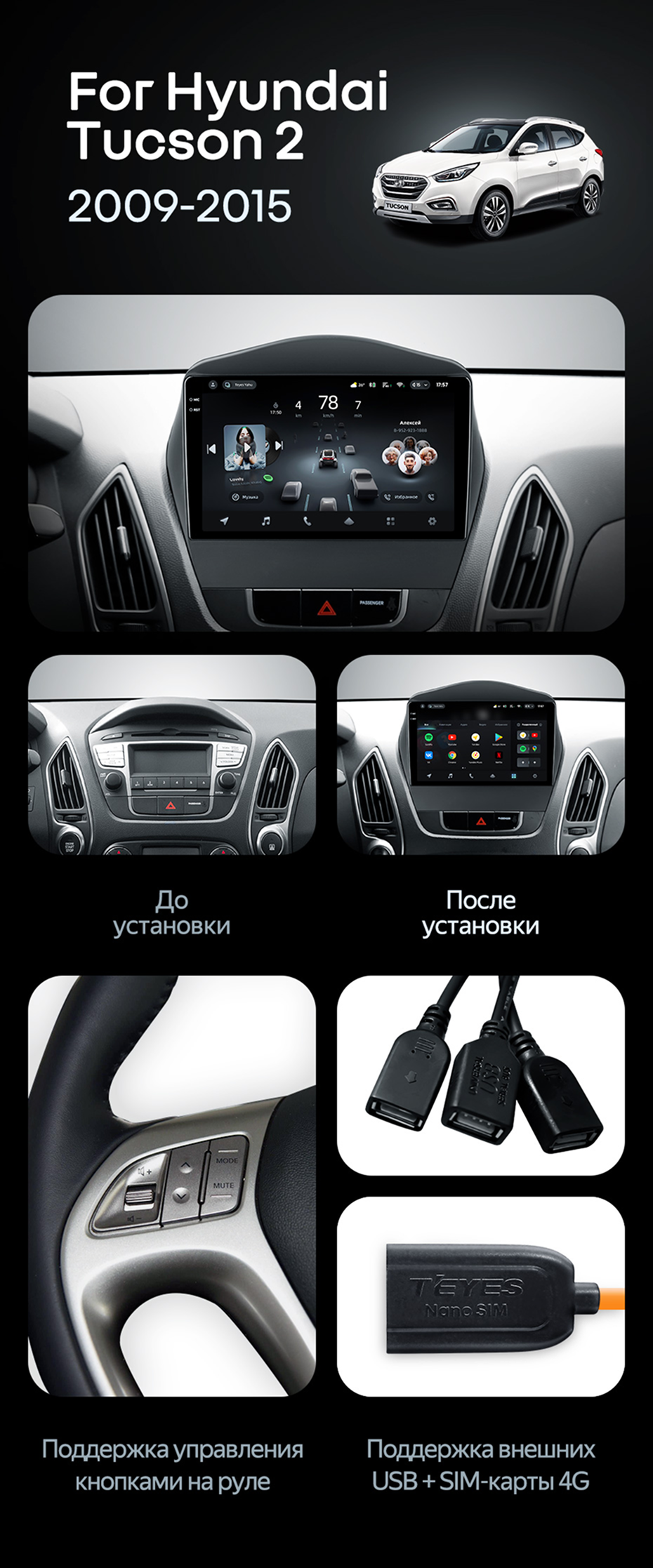 Штатная магнитола Teyes CC4 Pro 8/128 Hyundai ix35 (2009-2015) (Tucson 2) Тип-AB - купить всего за 64 070 руб. в интернет-магазине в Омске Teyes.com.ru. ✓ Самый лучший выбор мультимедиа ✓ Лучшая замена штатному ГУ ✓ Тел. +7 (800) 775-31-74