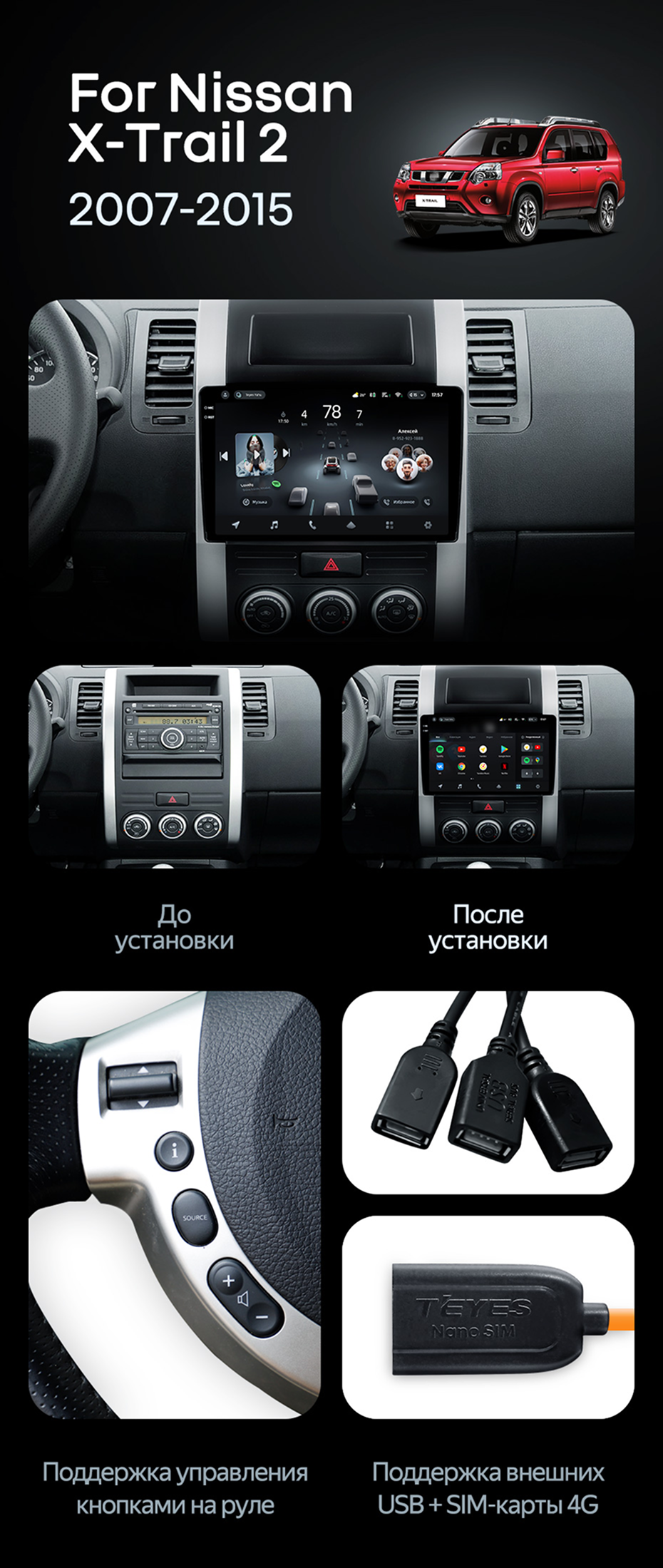Штатная магнитола Teyes CC4 Pro 8/128 Nissan X-Trail T31 (2007-2015) (13") - купить всего за 70 820 руб. в интернет-магазине в Омске Teyes.com.ru. ✓ Самый лучший выбор мультимедиа ✓ Лучшая замена штатному ГУ ✓ Тел. +7 (800) 775-31-74