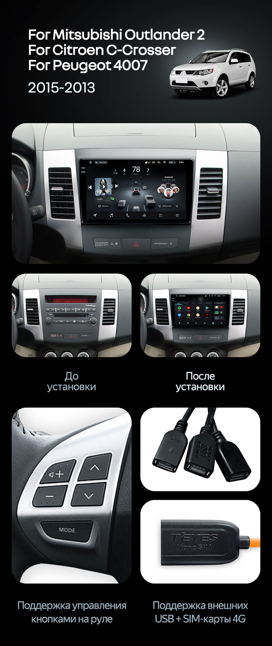 Штатная магнитола Teyes CC4 Pro 8/128 Peugeot 4007 (2007-2012) Тип-B - купить всего за 64 370 руб. в интернет-магазине в Омске Teyes.com.ru. ✓ Самый лучший выбор мультимедиа ✓ Лучшая замена штатному ГУ ✓ Тел. +7 (800) 775-31-74