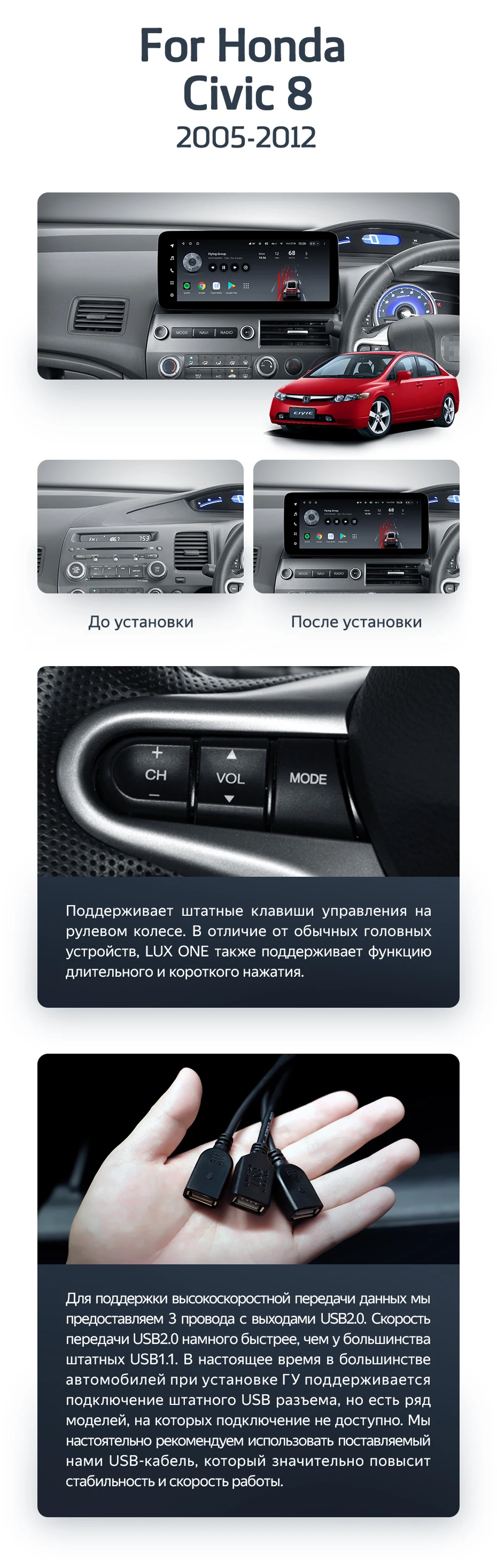 Штатная магнитола Teyes LUX ONE 4/32 Honda Civic 8 FK FN FD (2005-2012) Правый руль - купить всего за 43 930 руб. в интернет-магазине в Омске Teyes.com.ru. ✓ Самый лучший выбор мультимедиа ✓ Лучшая замена штатному ГУ ✓ Тел. +7 (800) 775-31-74