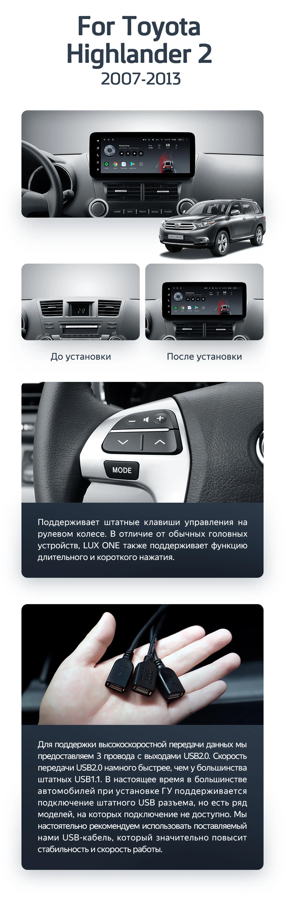 Штатная магнитола Teyes LUX ONE 6/128 Toyota Highlander 2 XU40 (2007-2013) - купить всего за 50 100 руб. в интернет-магазине в Омске Teyes.com.ru. ✓ Самый лучший выбор мультимедиа ✓ Лучшая замена штатному ГУ ✓ Тел. +7 (800) 775-31-74