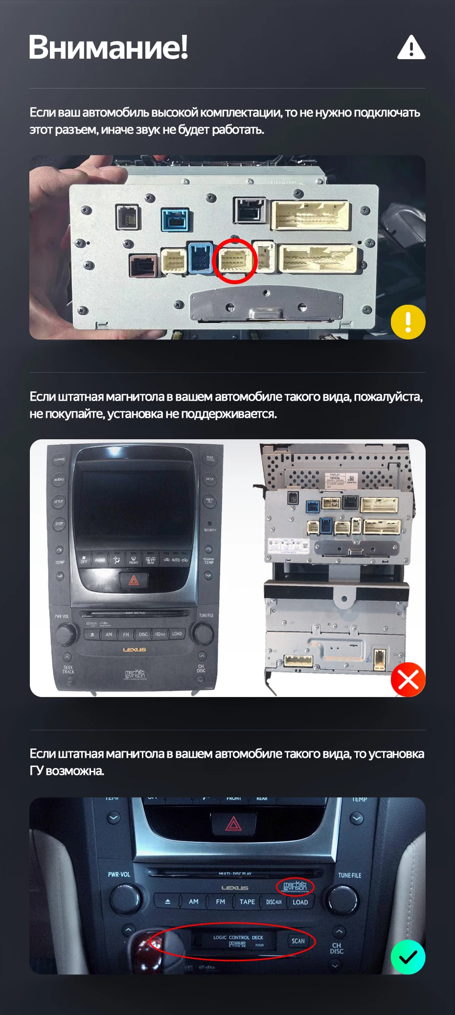 Готовый установочный комплект для магнитолы Lexus GS300 350 400 430 450h 460 3 S190 (2004-2011) 12,3 дюйма в штатное место, включает переходную рамку и проводку.