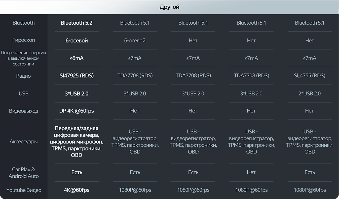 Сравнительная таблица